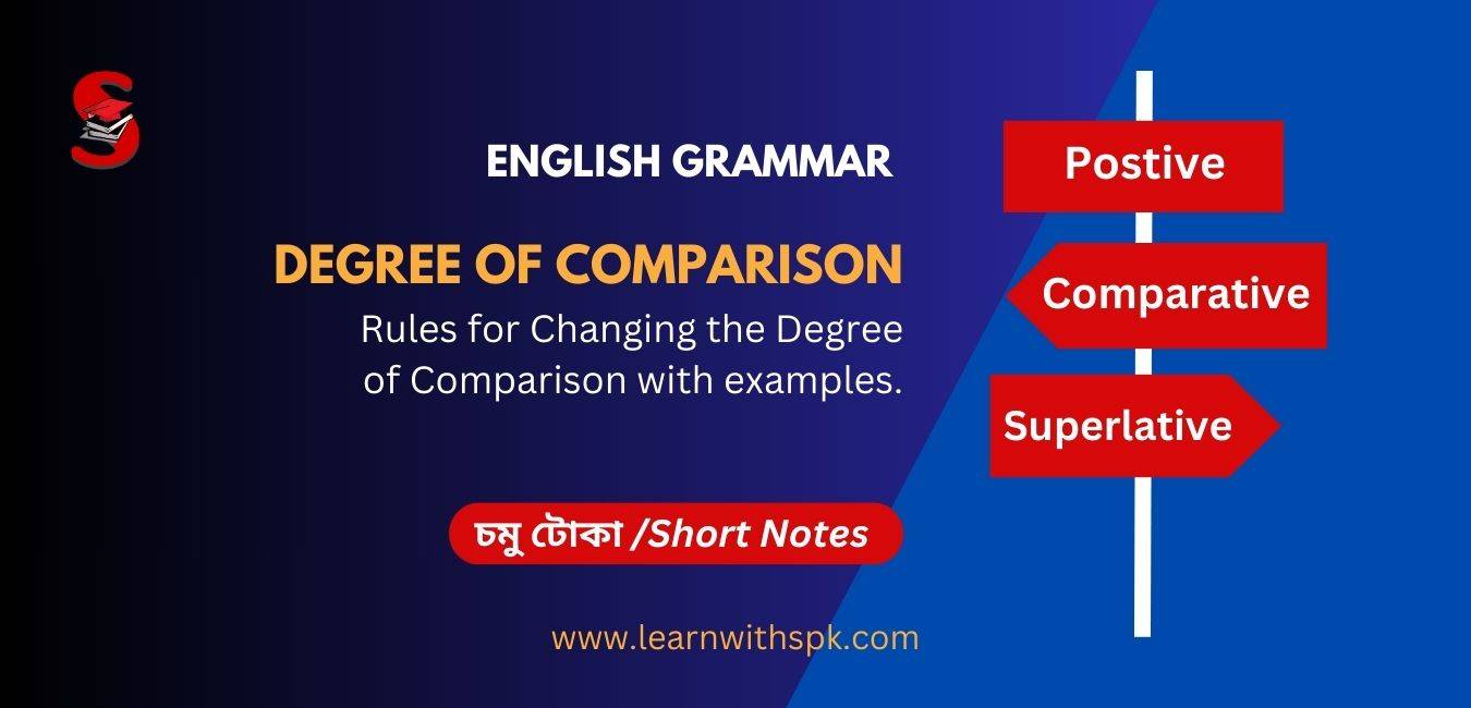 What are the rules for changing the degree of comparison? This article will give you the rules to change the degree of comparison of an adjective from a positive degree into a comparative and superlative degree. এই article টোত আমি ইংৰাজী ব্যাকৰণৰ “Degree of Comparison” সলনি কৰাৰ কিছুমান নিয়মৰ বিষয়ে আলোচনা কৰিম। Degree of Comparison … Read more